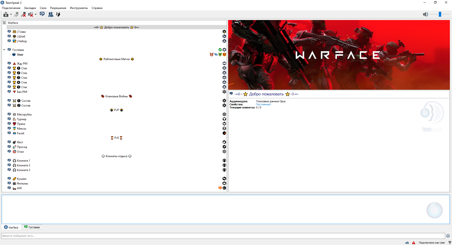 Гость - ограниченный доступ, может находиться только в канале Гостевая